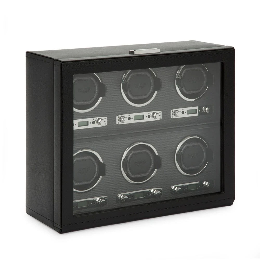 Tervetuloa luksuskellojen säilytyksen maailmaan! Kellovitja 6 Kellolle - Musta on täydellinen ratkaisu arvokkaiden kellojesi säilyttämiseen ja huoltamiseen. Tämä hiilikuidusta ja sametista valmistettu tyylikäs kellovitja ei ole pelkästään säilytysratkaisu vaan myös näyttävä sisustuselementti kotiin tai toimistoon. Neljännen sukupolven perheyrityksen valmistamana jokainen yksityiskohta on huolellisesti viimeistelty – käsinmaalatusta lakkapinnasta aina kromin viimeistelyyn. Kellovitjasi yhdistää klassisen tyylin moderniin teknologiaan LCD-kosketusnäytön ja sisäänrakennetun valaistuksen ansiosta. Olipa kokoelmassasi arvokkaita automaattikelloja tai tyylikkäitä kvartsiverioita, tämä laadukas kellovitja pitää ne aina käyttövalmiina ja suojassa pölyltä.