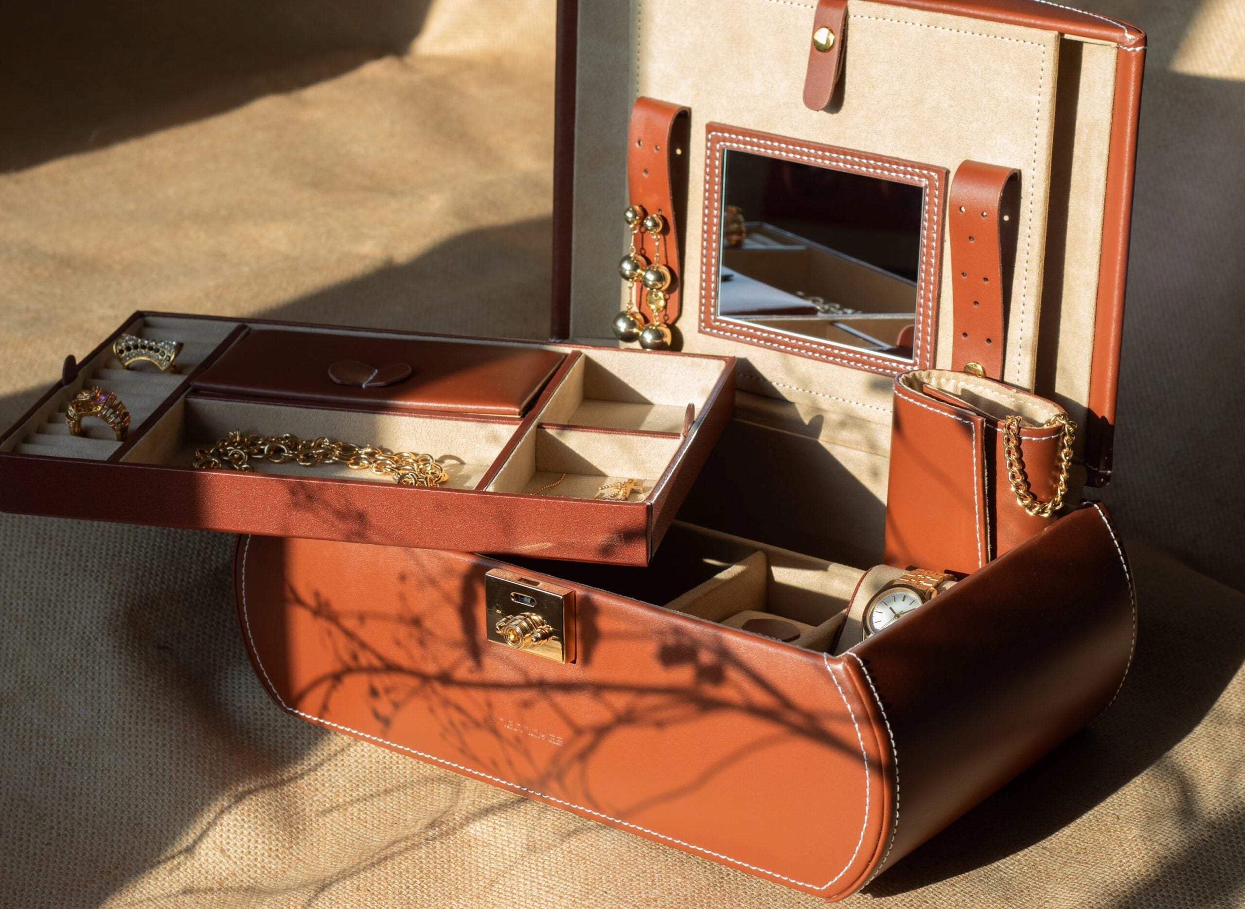 Valitse laadukas Nahkainen Korulaatikko - Ruskea & Beige koruillesi