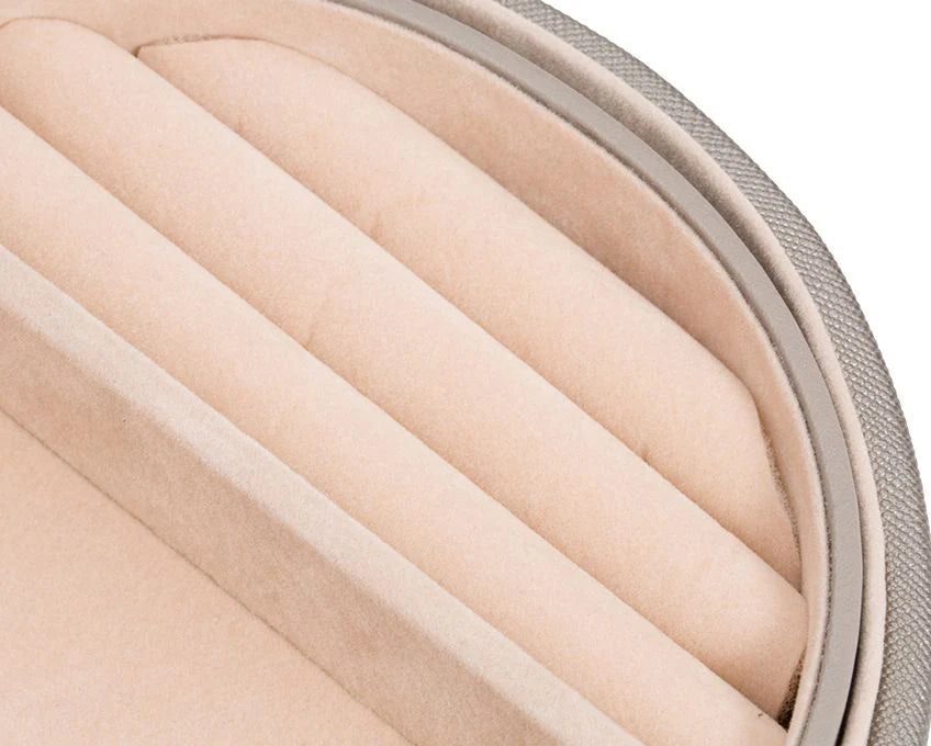 Ensimmäisen pienen matkakorulaatikon antaminen on kuin hiljainen lupaus tulevista aarteista ja muistoista. Tämä hienostunut pieni matkakorulaatikko kermanvärisellä sisustalla ei ole vain säilytyspaikka koruille – se on perintökappale, joka tulee seuraamaan omistajaansa elämän eri vaiheissa. Jokainen yksityiskohta tässä matkakorulaatikossa on suunniteltu huolella, aina korkealaatuisesta tekonahkasta sen pehmeään mokkasisustaan. Laatikon elegantit sävyt ja käytännöllinen muotoilu tekevät siitä täydellisen kumppanin niin kotiinsa asettuvalle korukokoelmalle kuin matkoille lähteville aarteille. Kun avaat laatikon, kermaisen pehmeä sisusta toivottaa korusi tervetulleeksi turvalliseen syleilyynsä ja korostaa niiden kauneutta tavalla, joka saa sinut ihastumaan uudelleen ja uudelleen.