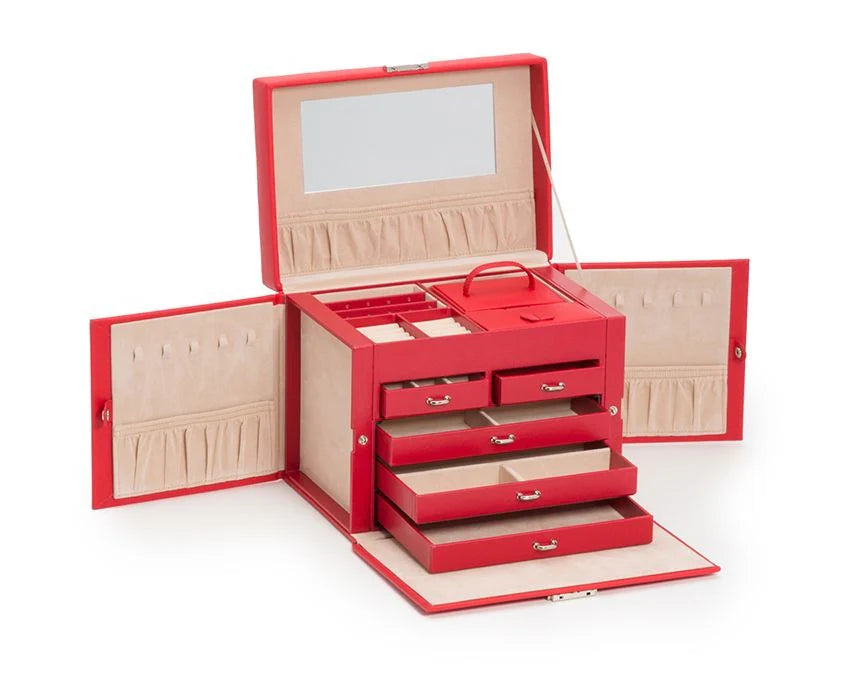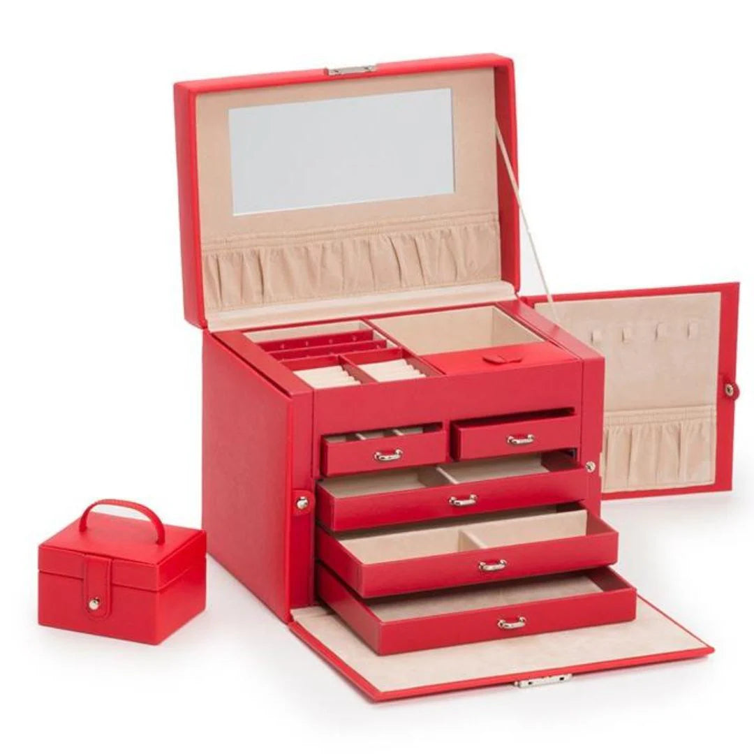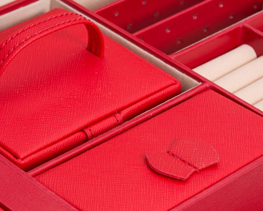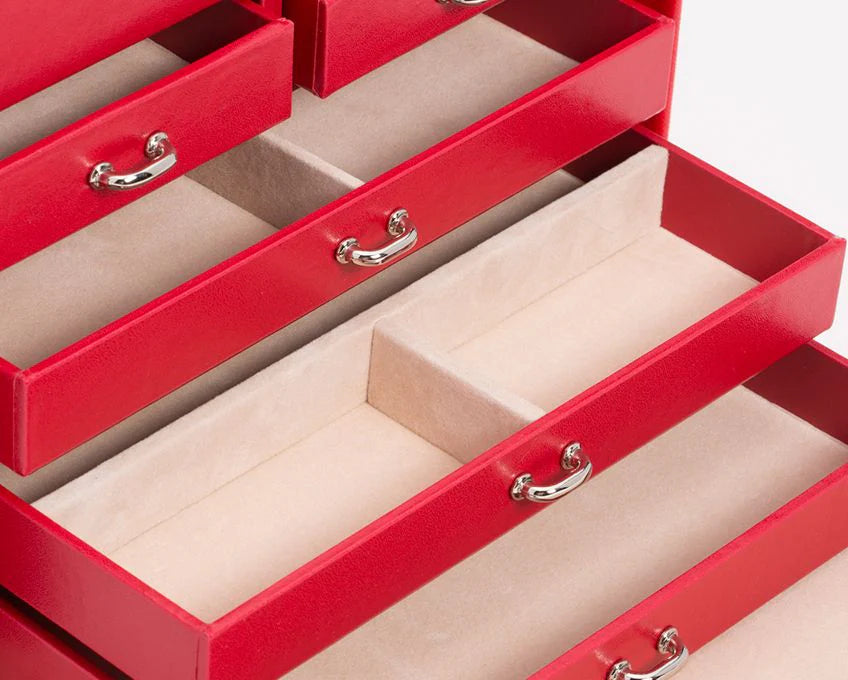 Ylellinen Punainen Korulaatikko - 2 Sivulokeroa korujesi tyylikkääseen säilytykseen